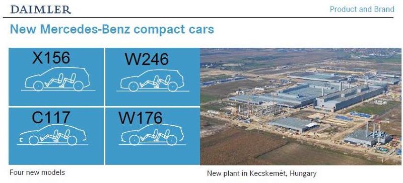 Die neue A-Klasse wurde eingefangen und wirkt deutlich mehr nach "Sport-Kompaktwagen" in der BMW 1er Klasse als nach A-Klasse (Quelle: worldcarfans.com). Produziert wird die neue A-Klasse neben der B-Klasse und 2 weiteren neuen Modellen in Ungarn (die so genannte MFA-Plattform).