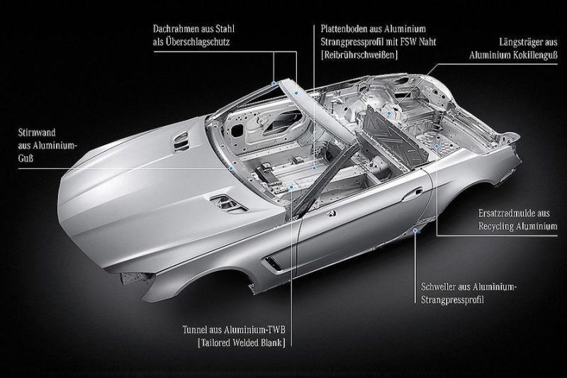 1999 hatten wir hier bereits eine Rohkarosse des aktuellen SL Baureihe 230 veröffentlicht, heute gibt es Fotos der nächsten Generation Mercedes-Benz SL. Der neue SL wird eine durch Aluminium dominierte Karosserie und zahlreiche Neuerungen erhalten.