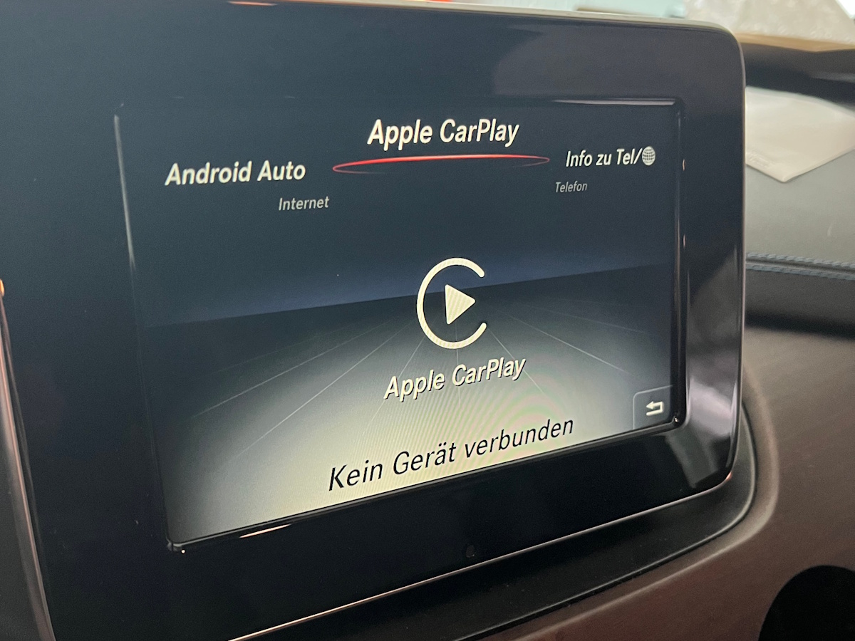 Zuhause konnte ich dann CarPlay erfolgreich mit dem Dongle aktivieren. Es braucht übrigens auch kein neues USB-Interface, das bestehende Interface ohne Tablet-Symbol (A1728202826) in der Mittelarmlehne funktioniert einwandfrei mit Apple CarPlay (iPhone angeschlossen am USB-Anschluss 2).